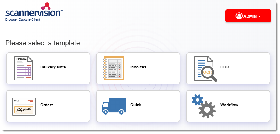 All ScannerVision web clients work in exactly the same way and they look exactly the same on all supported MFP brands and web browsers. Once you have launched the ScannerVision web client, you will see a screen similar to this (if authentication is enabled on the client):