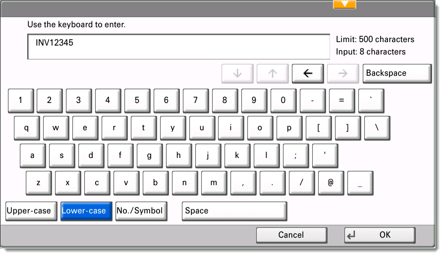 If you have to type a value for the question, tap in the edit box. Depending on the MFP, you will either be taken to a page where you can enter a value, or the MFP’s built in soft keyboard will appear and you can enter a value. If you are satisfied with the value that you have entered, you can tap the “OK” or “Enter” button on the keyboard, or simply select the next question.